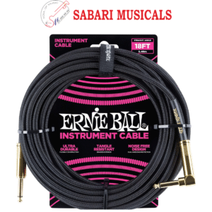 Ernie Ball Braided Instrument Cable, Straight/Angle, 18ft, Black...