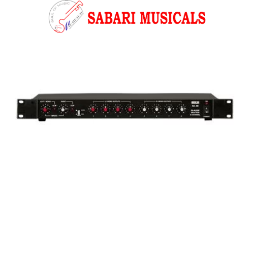 Compact and rugged professional line level signal splitter. -Designed for use in a wide variety of indoor and outdoor PA applications. -Accepts Line Level Stereo as well as Mono inputs through F/XLR connector as well as 6.3mm (1/4”) stereo phone jack sockets. -Provides four stereo balanced outputs or eight mono balanced outputs through M/XLR connectors. -Individual volume control for each input & output channel. -Separate clip LED indicator for Left and Right input signal. -Easy to operate Stereo/Mono push switch, provided on front panel. -Operates on AC mains. -19” rack mountable in 1U size and usable as a table top unit also.