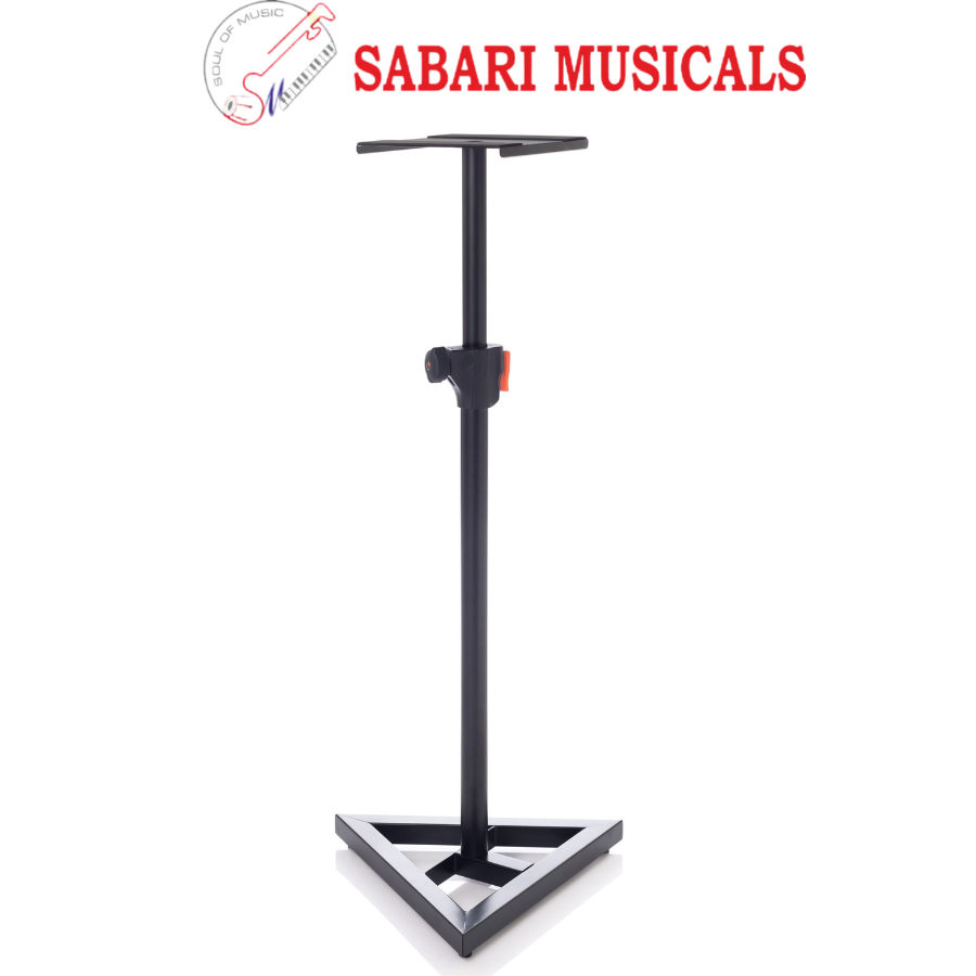 Bespeco PN90FL Monitor Stand Speaker and monitor stand with telescopic tube structure: steel external tube diam. 40 x 1,2 mm and aluminium internal tube diam. 35 x 1,2 mm. Steel squared base 35 x 1,2 mm. Such features make the stand, among its range, the strongest and more stable in the market. Innovative design. Automatic push button mechanism that allows the tube lift but avoids the fall.