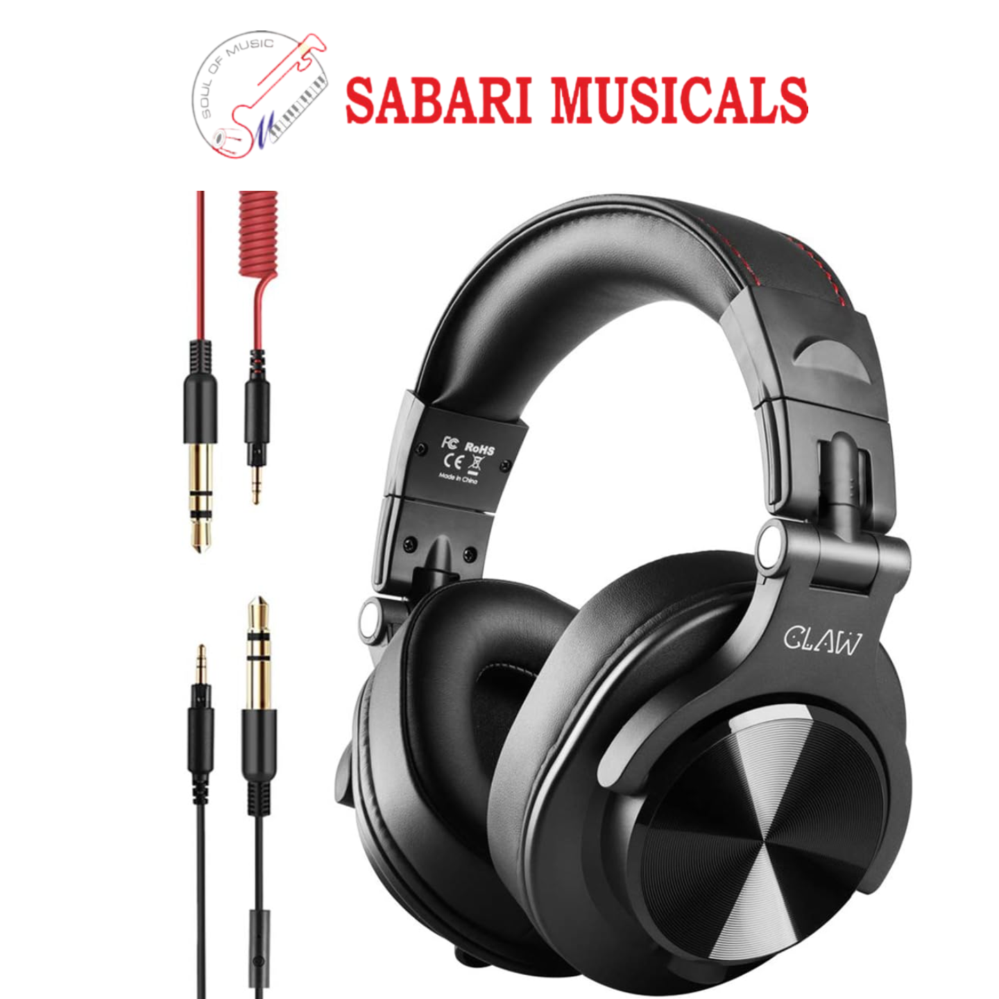 CLAW SM50 PRO Professional Studio Monitoring DJ Wired Headphone with Protein Leather Cushions | 2 Detachable Cables (2.8m Coiled & 1.2m Straight Cable with Mic and in Line Control) Black