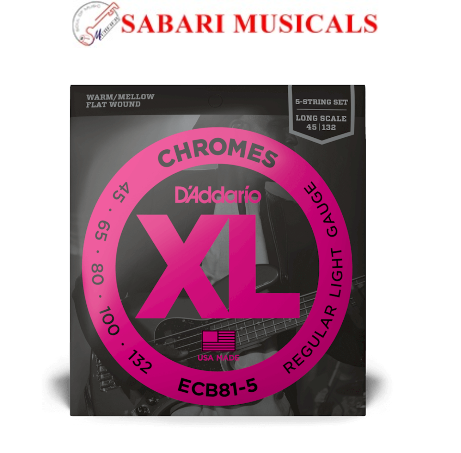 D`Addario ECB81-5 Chromes Flatwound Bass Guitar Strings – .045-.132 Regular Light Long Scale 5-string