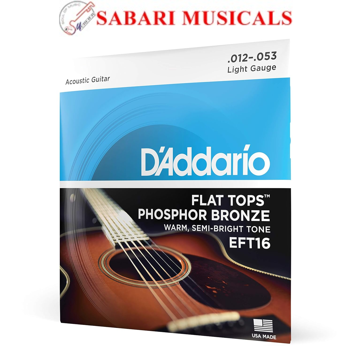 D’Addario EFT16 Flat Tops Phosphor Bronze Acoustic Guitar Strings, Light, 12-53
