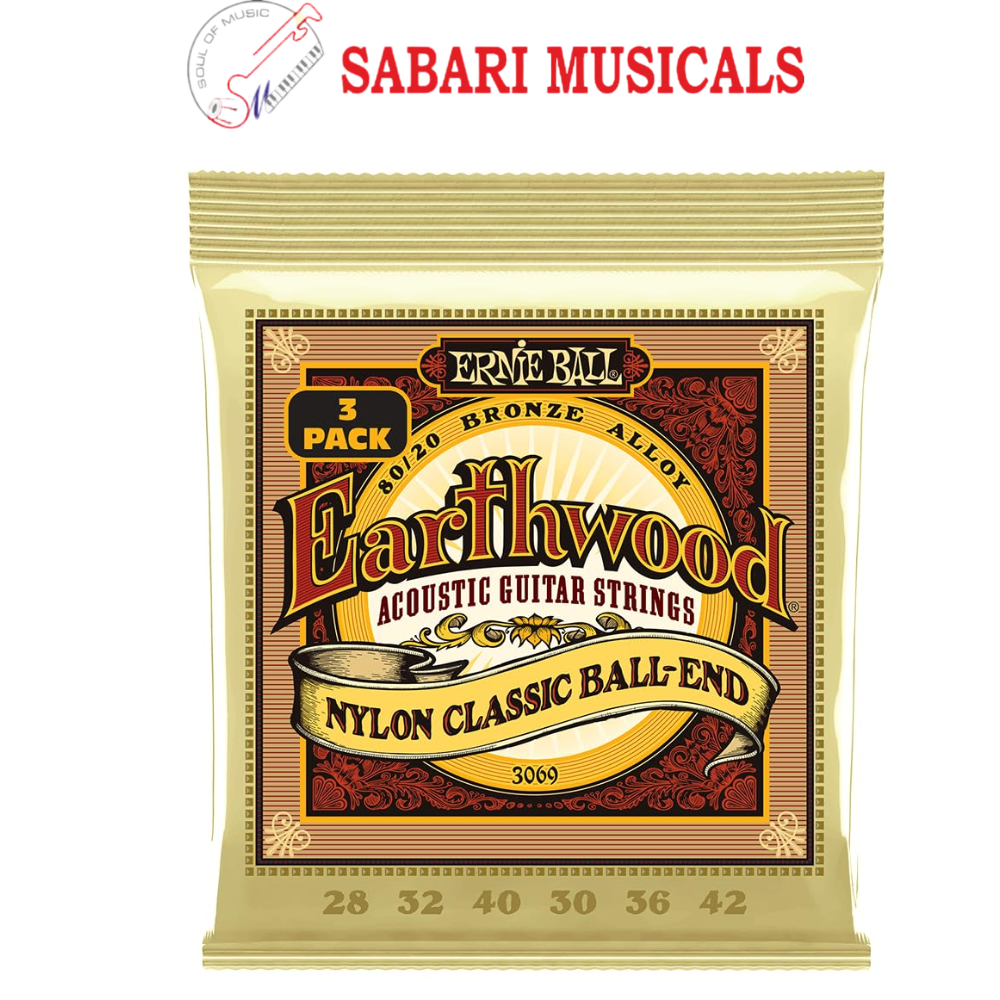 - Ernie ball 3069 Earthwood Folk Nylon Ball End 28-42 Acoustic Guitar Strings 3 Packs