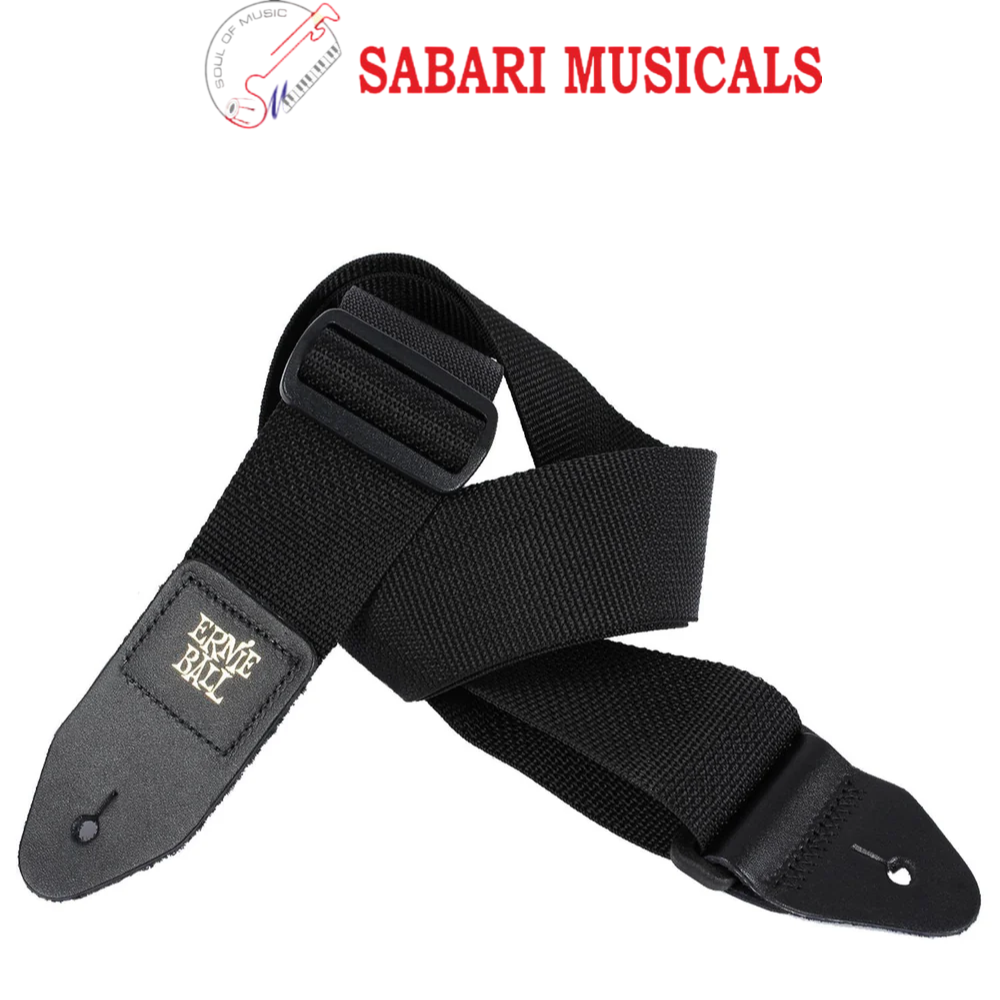 Ernie Ball 4037 Black Polypro Strap Ernie Ball Polypro guitar straps feature tough 2″ wide Polypropylene webbing that is computer stitched to quality black leather ends for absolute maximum strength and longevity. Black Delrin adjustable buckle and connector further enhance durability and good looks. With Polypropylene webbing the color will not bleed or stretch. The Ernie Ball logo is fashionably stamped on gold print.