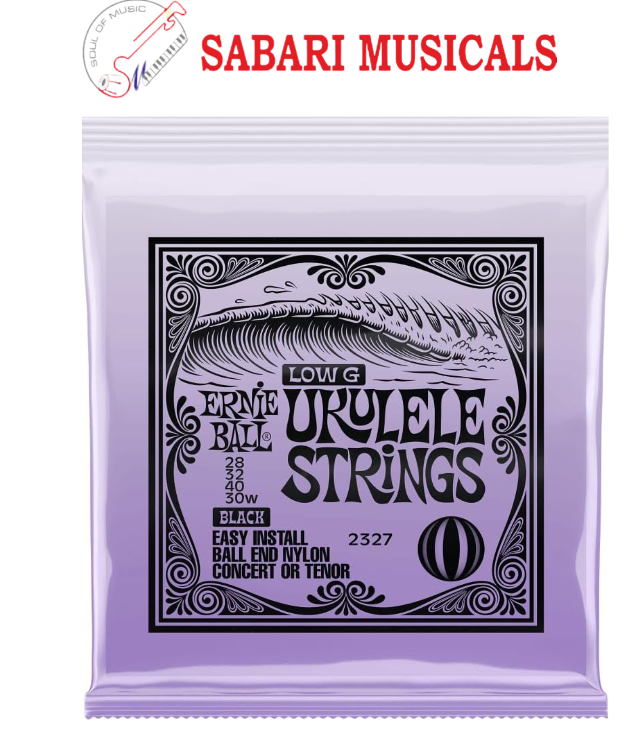 Ernie Ball Concert & Tenor Nylon Ball End Ukulele Strings Wound G, Black (P02327)