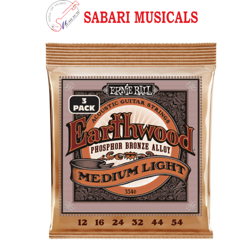 Ernie Ball P03546 Earthwood Phosphor Bronze Med/Light 12-54 (3 Set)