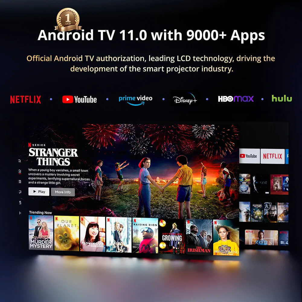With a built-in authorized Android TV 11.0 system, you can access 9000+ apps and a wide range of content from various platforms like Netflix, HBO, YouTube, Prime Video, Disney+, and more. It also works with Google Play and Google Assistant, which uses intelligent voice interaction to make it easier to use and more enjoyable.