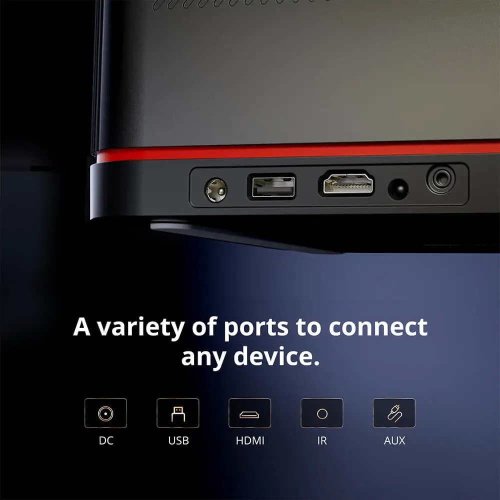 This projector supports Android, iOS, PC, and other devices under the same network with one-click wireless screen projection. It offers a seamless and free sharing experience with the same screen size. Equipped with 2.4G and 5G dual-band Wi-Fi, it ensures compatibility with 99% of routers available on the market and allows for faster speeds and a more stable connection. With multiple ports, it can connect to various devices easily. The HDMI 2.1 port provides a faster connection without latency.