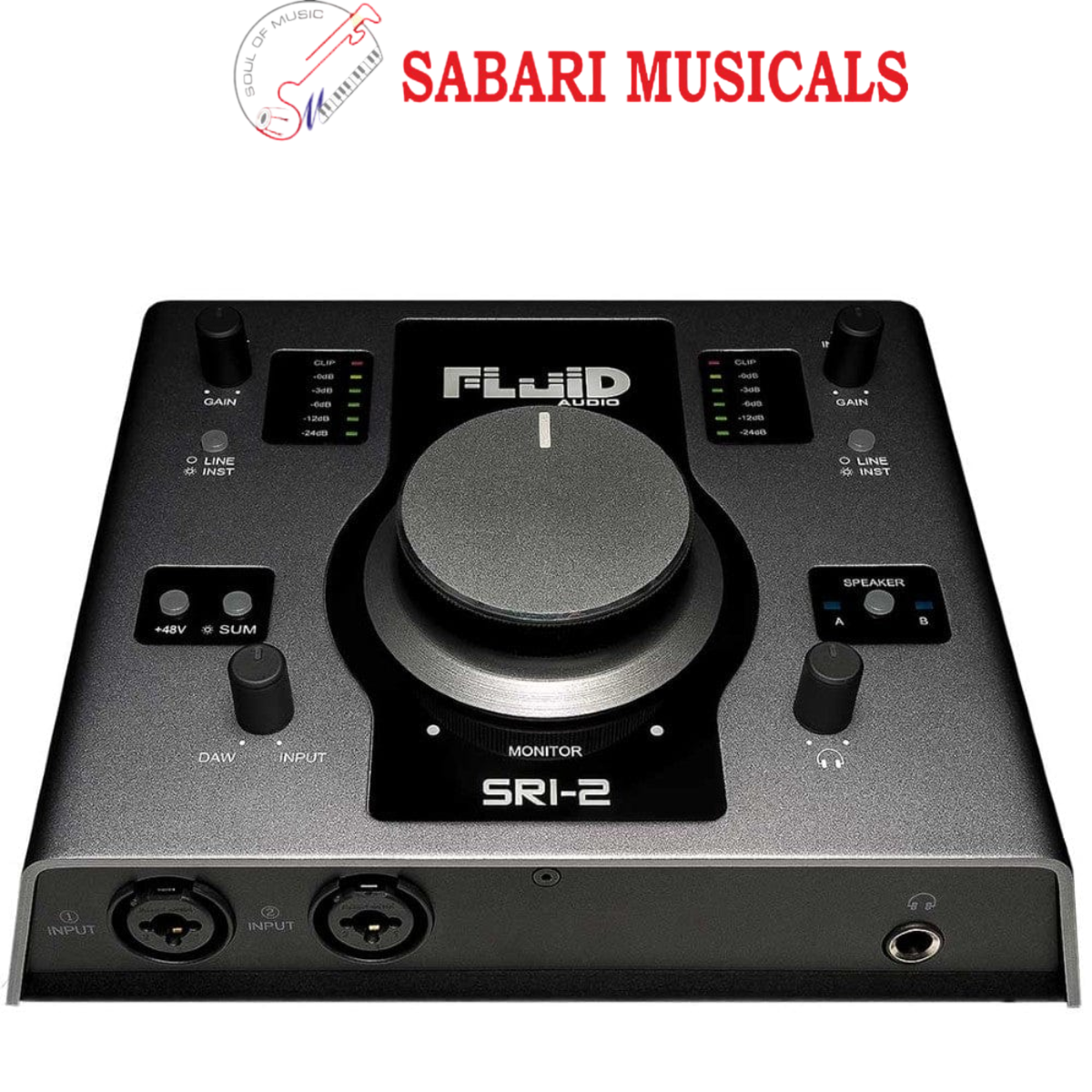 Fluid Audio SRI-2 2×2 USB Audio Interface Overview: Featuring a robust aluminum chassis, the SRI-2 interface is a sturdy piece of gear reminiscent of the “old school” studios Along with the striking design comes exceptional 21st century audio quality and functionality.