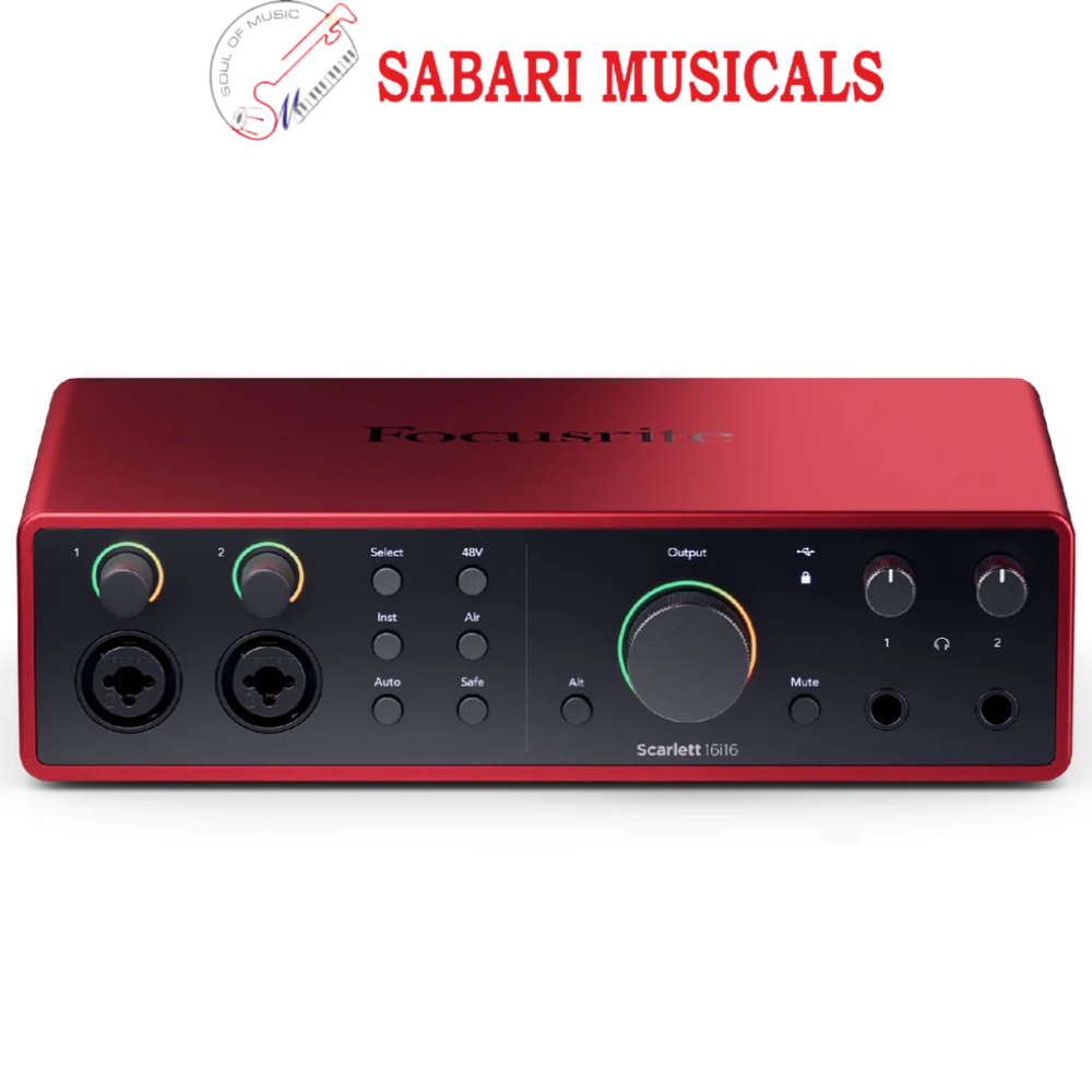 Focusrite Scarlett 16i16 Gen 4 Audio Interface Overview: Scarlett 16i16 is a compact, all-in-one studio hub for your instruments and outboard gear. Ideal for artists and producers, 16i16 is equipped with enough I/O to connect all your studio gear. Two of our most detailed ultra-low-noise mic preamps. Hi-Z, line, and MIDI connections for your guitars , keys, synths, grooveboxes, and controllers.