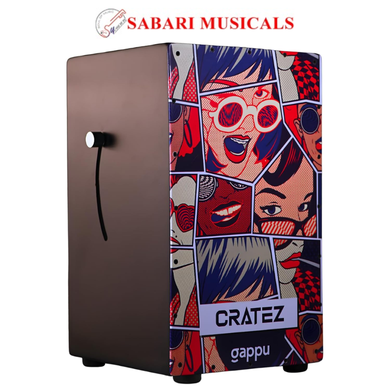 Gappu Cratez Cajon Funky Graphic Design | Enhanced Extra Bass & Adjustable Snare with Music Graded Plywood Front Plate – Maple Tapa | Percussion Drum For Beginners and Students Practice – Black Body