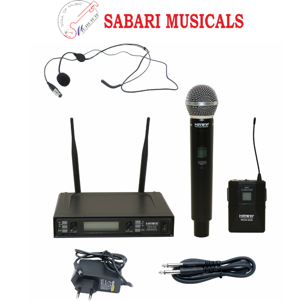 Hawk WDHS 4000 Wireless Microphone System – One Handheld+One Bodypack With Headset Mic