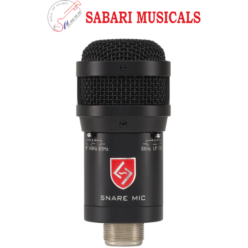 Regardless of the snare drum, musician, or recording setting, the Snare Mic’s condenser capsule is adjusted to capture the greatest snare sound. You may use the integrated sound shaping features to turn on an 80 or 140 Hz high-pass filter to prevent kick drum and tom overflow, or a 5 or 12 kHz low-pass filter to expand bottom response and eliminate cymbal leakage. By allowing you to record detail from both the batter head and the snares, the Snare Mic’s natural 3D sound response lowers the number of microphones required for capture and avoids phasing problems. Included with the Snare Mic are a cushioned Cordura tote case and an articulating hard mount.