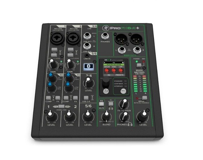 - Stream. Record. Create. Mackie ProFX6v3+ is a 6-channel professional analog mixer and audio interface for recording and streaming, featuring Onyx preamps and EQ, switchable USB recording modes, bidirectional Bluetooth with Mix Minus, and upgraded GigFX+ effects you can adjust on the color LCD screen.
