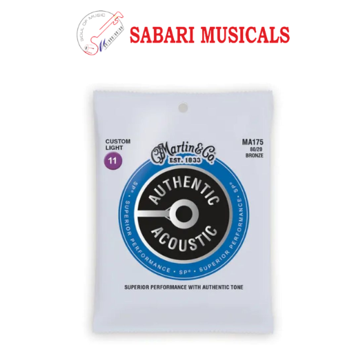 When coupled with the highest quality wrap wire you get consistent true tone that you can count on song after song. Available in 80/20 Bronze. Martin Authentic Acoustic SP strings offer excellent tuning stability, corrosion resistance and great playability. Features: Model: MA175 Tension: 153.7 Custom Light .011 to .052