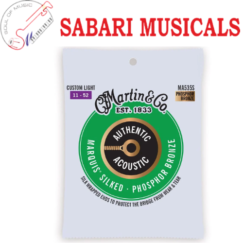 Martin MA535S Phosphor Bronze Authentic Custom-Light Acoustic Guitar Strings MA535S Authentic Acoustic Phosphor Bronze Custom-Light Guitar Strings are engineered with the performer in mind and they will always stand up to rigorous practice and performance schedules Martin starts with the highest tensile-strength core wire, then tin-plate it on all six strings for added corrosion resistance; because what you don’t see matters.