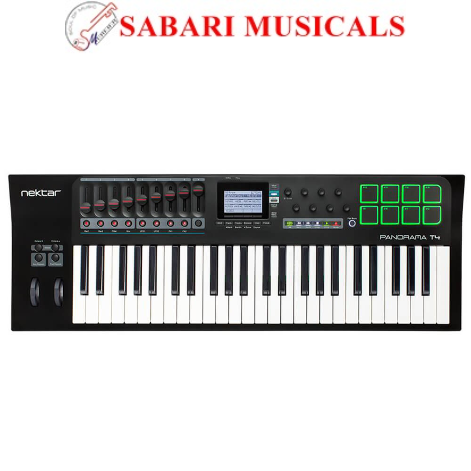 The controller’s dimensions are 82 cm (L) x 27.7 cm (D) x 8 cm (H). The Nektar Panorama T4 combines advanced instrument plugin control, customizable features, and deep integration with DAWs and software, making it a versatile tool for music production, performance, and sound design.- 49-note 2nd Gen synth-action keyboard with velocity and aftertouch sensitivity.