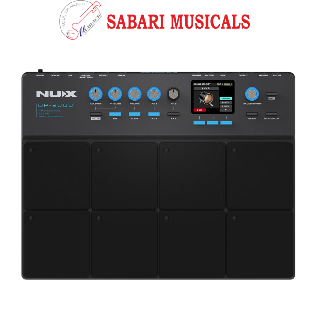 Introducing the brand new NUX DP-2000, a powerful integrated percussion pad. With its 8 velocity sensitive independent strike pads, the DP-2000 not only includes the high standard acoustic drum samples from our flagship DM-8 kit, but it also includes folk percussion and electronic sound samples. What’s more, you can expand your sound library by importing your own drum samples with a U disk. Additionally, the DP-2000 includes inputs for external triggers. Easily add a hi-hat pedal and external kick drum, making the DP-2000 a mini e-drum kit.