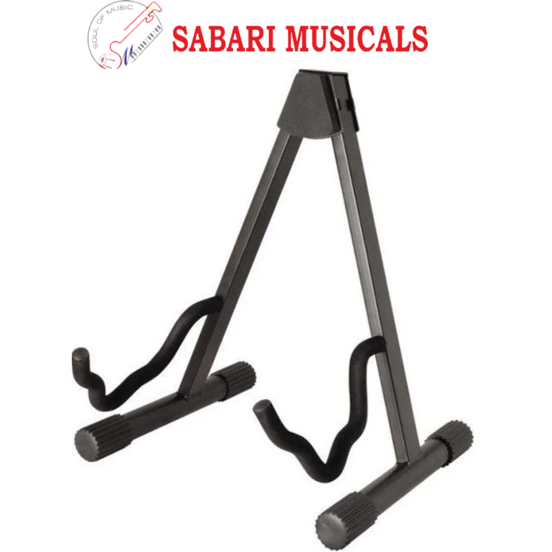 The unique shape also allows this stand to nest together with others when not is use. On-Stage GS7362B Guitar Stand Features: Single guitar/mixer/amp stand Velveteen rubber padding 1″ x 1″ square tubing Black powder coat finish.