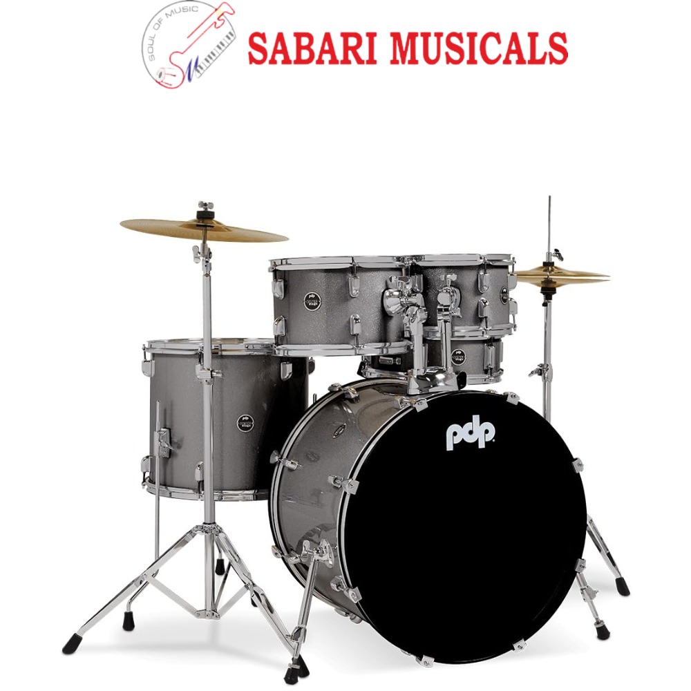 PDP Center Stage PDCE2015KTSS 5-piece Complete Drum Set with Cymbals – Silver Sparkle