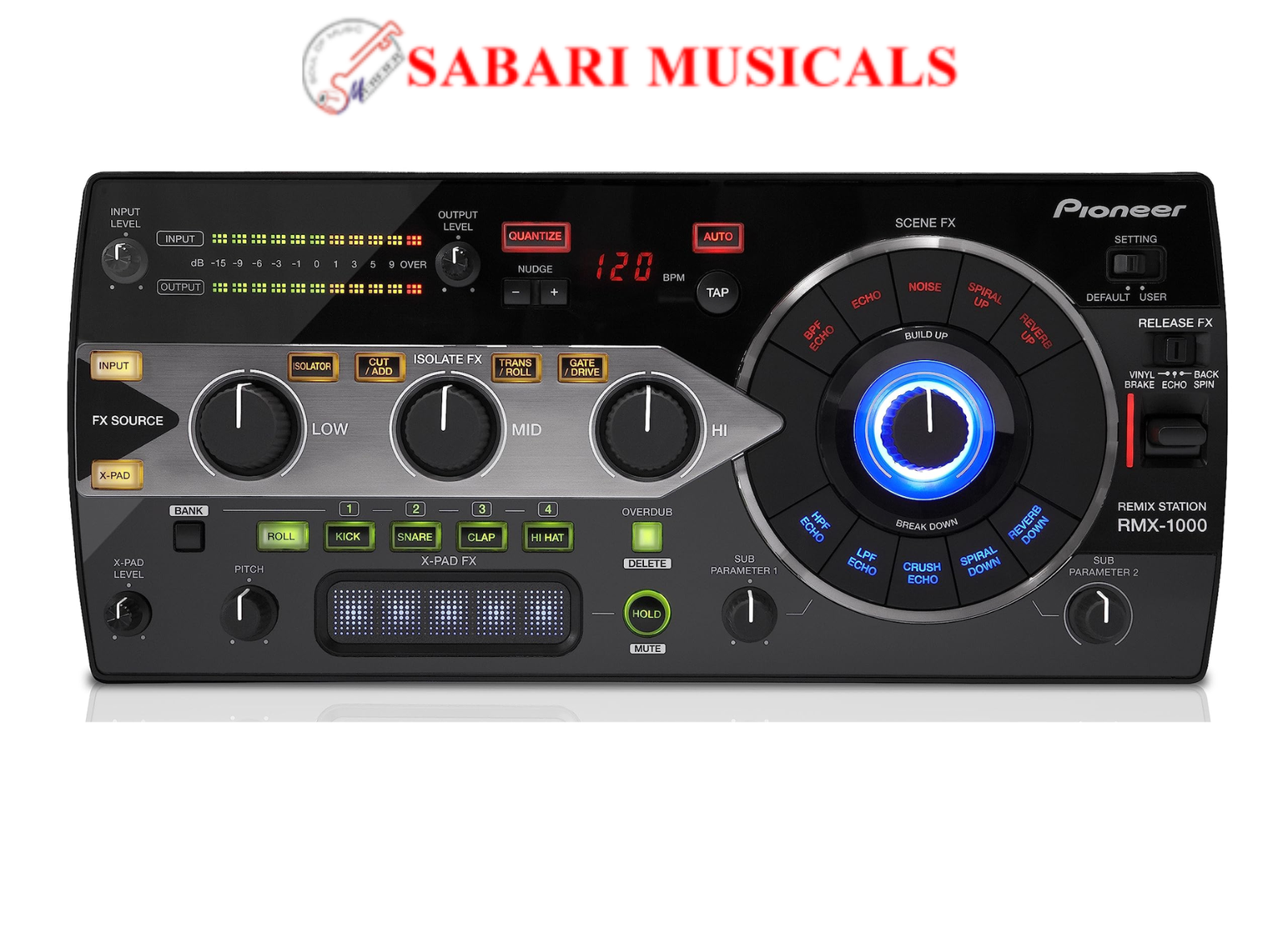 Of course, transition effects such as buildups and breakdowns are only part of what makes an original remix cool. You’ll also need to be able to add interesting rhythmic elements to your music as well. That’s why Pioneer Pro DJ outfitted the RMX-1000 a highly flexible ISOLATE FX section. This processor combines the 3-band EQ you’d expect to find on any decent DJ mixer and adds cool effects such as a variable beat roll, a hard gate, or gritty overdrive. What’s more, you can choose to run either the RMX-1000’s input or its X-PAD FX section through the ISOLATE FX engine, giving you access to a world of fun rhythmic effects and on-the-fly sound manipulation.