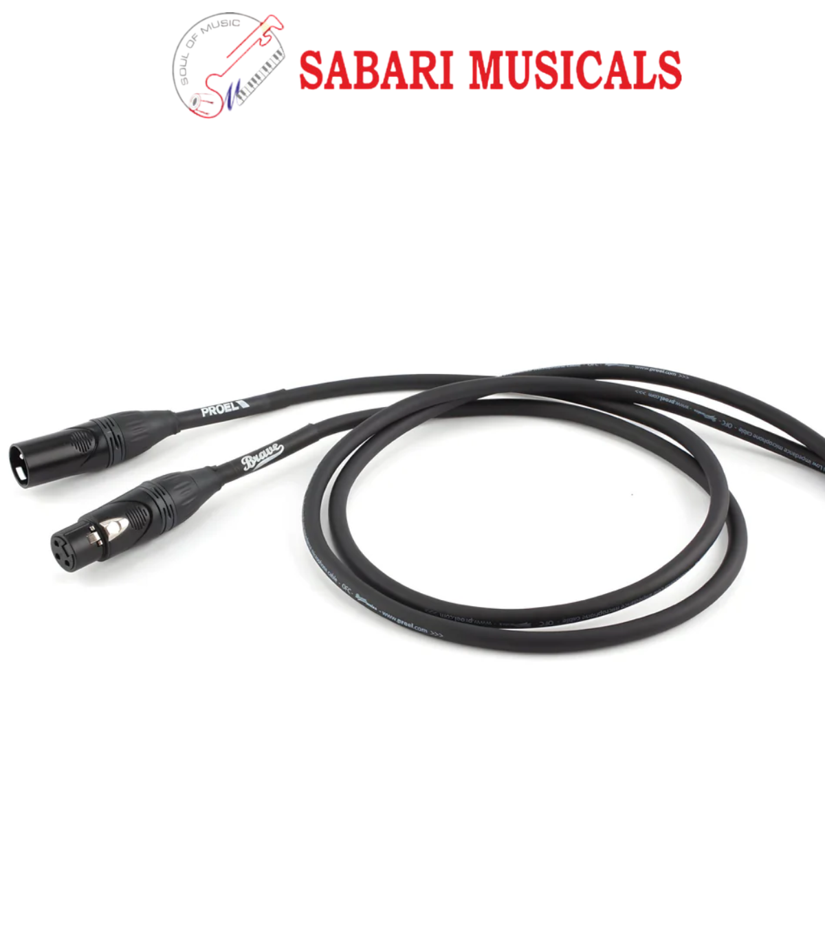 Proel BRV250LU5BK Features: Microphone cable 3P xlr female / 3P xlr male connectors Matt Black flexible PVC jacket 7mm external diameter Length: 5 m. Proel BRV250LU5BK Specifications: Color: Black Connectors: XLR 3P female / XLR 3P male Overall jacket: High flexibility Ø 7.0 mm PVC Shield: dense spiral copper wire Made in China