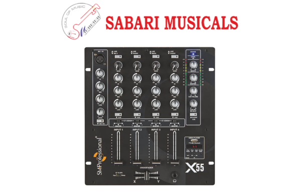 The X 55 is a 5 channel DJ mixer with a built-in USB MP3 media player & Bluetooth, 3-band kill EQ (-30 dB) and multiple inputs and outputs to let you mix in style.