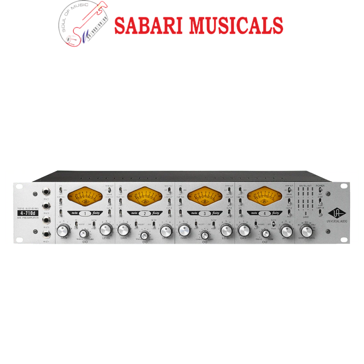 Buy Universal Audio 4-710d 4-Channel Twin Finity Mic Preamp online in India – India’s music equipment superstore _x005F Universal Audio 4-710d 4-Channel Twin Finity Mic Preamp _x005F The Universal Audio 4-710d is a boutique quality, 4-channel microphone/line preamplifier with unique tube and solid state tone-blending capabilities—perfect for a wide range of microphone and instrument sources.