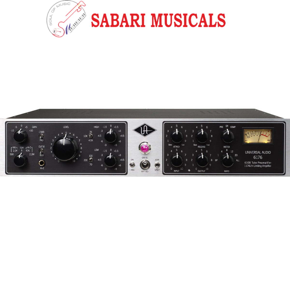 The Universal Audio 6176 is a tube channel strip that combines the classic 610 microphone preamp and the famed 1176 compressor. The 6176 is the ideal analog front-end for digital audio recording, because to its extremely versatile tone, function, and ultra-quiet operation.