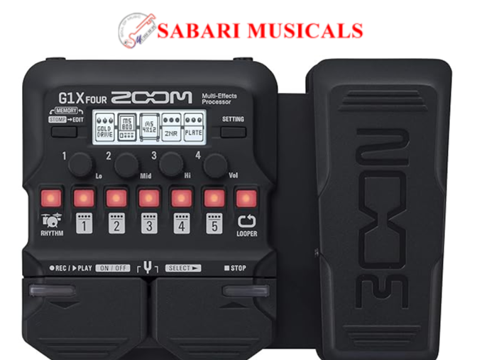 - Expression pedal enables real-time control over volume, wah, delay, and pitch effects